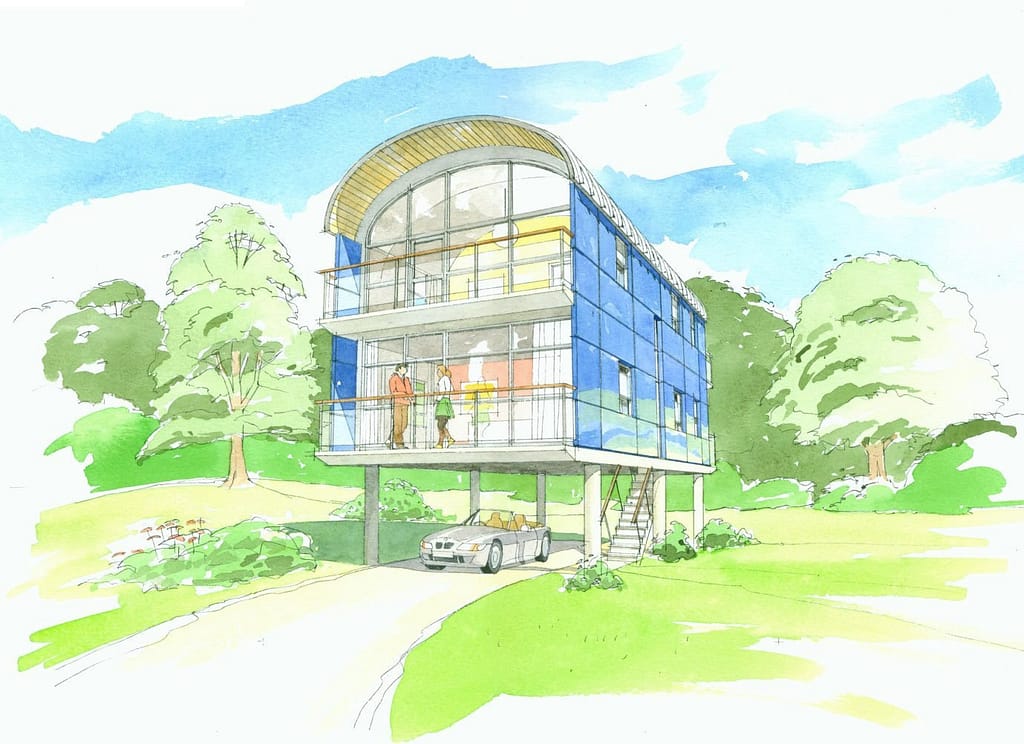 I thought it was a pretty sexy idea. I was looking for a nice big derelict site in Avonmouth for example, close to the M4/M5 junction. The exhibition was to give individuals and organisations of any kind the chance to design build and show off an affordable home. The rules were to be pretty minimal, and since they weren’t permanent homes there wasn’t a problem with planning. What I had in mind was a down to earth, informal, exciting place to show off the kind of houses people might like to think about living in, compared to the retro, faux, increasingly cramped and tacky boxes that they were being force fed as a captive market by a dozen major developers driven only by profit.