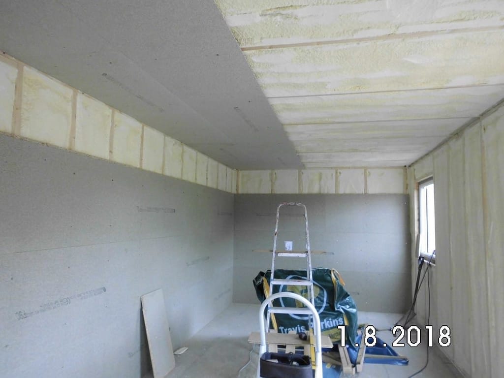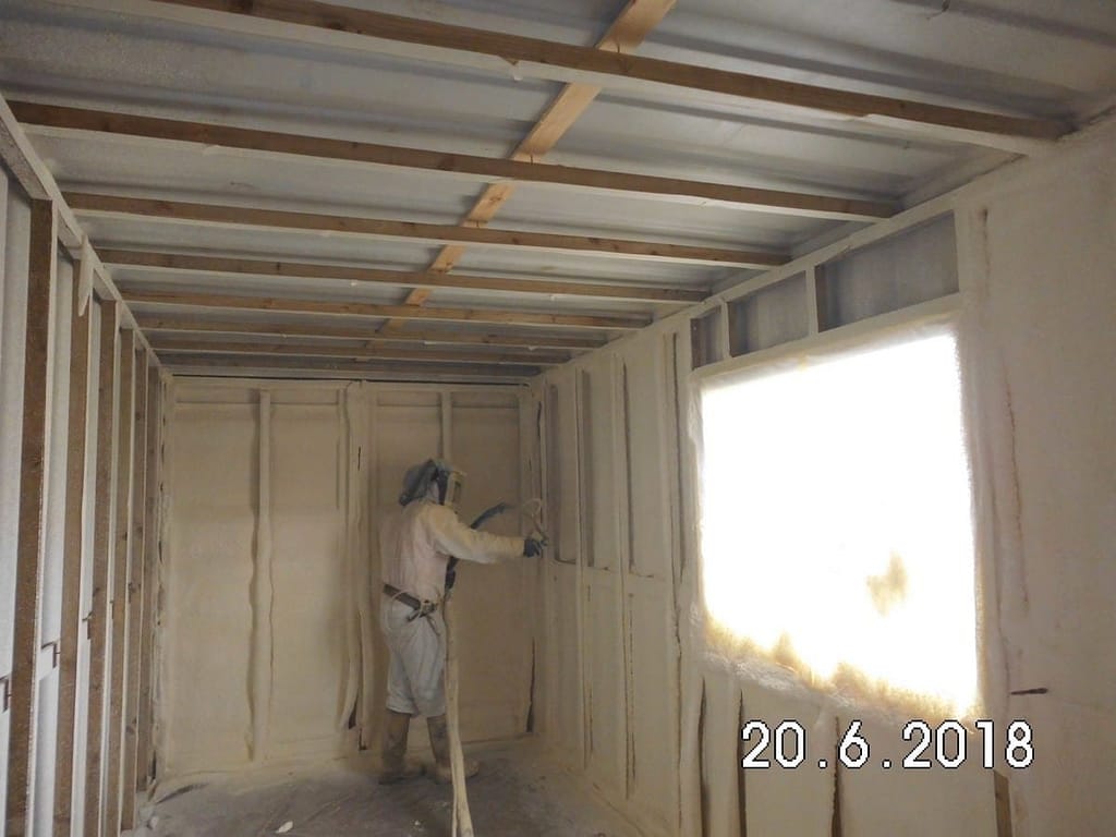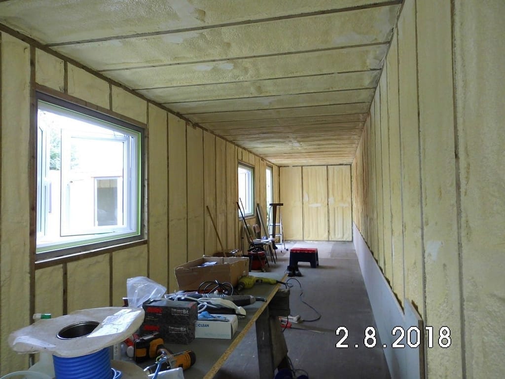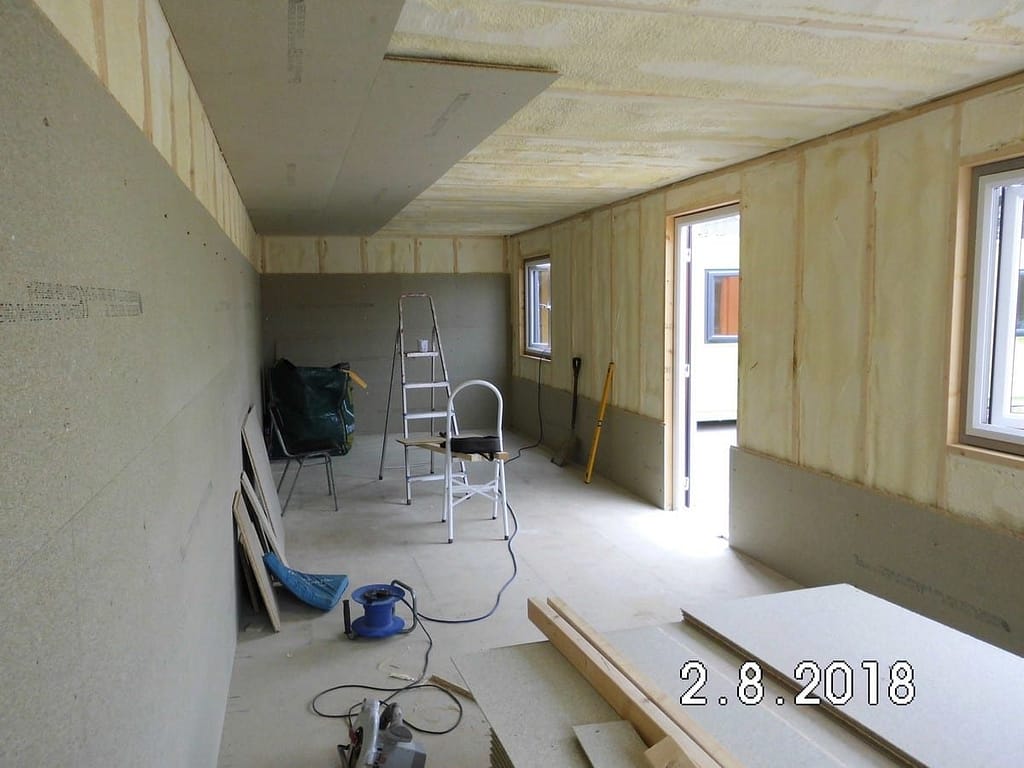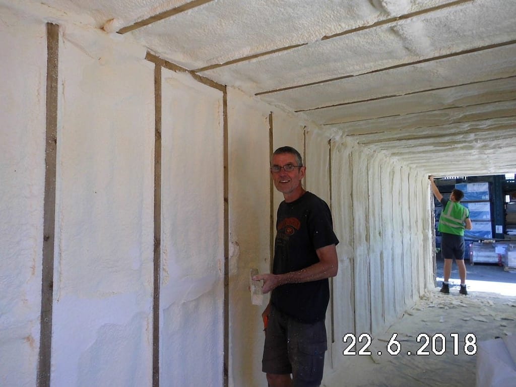 We are using closed cell spray foam insulation. It is expensive, but extremely efficient, and will enable us to achieve a betteru-value insulation performance than Portakabin specify for their sleep units, which is their top insulation spec.