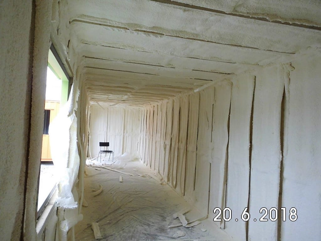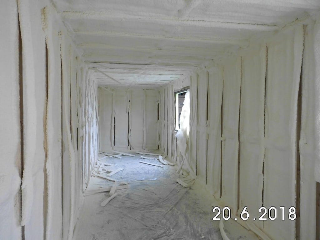One of the things you have to be careful about with spray insulation is that, because it gets behind everything, and into every nook and cranny, it tends to “push out” the stud framing as it expands.
