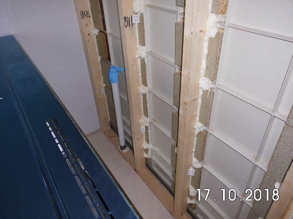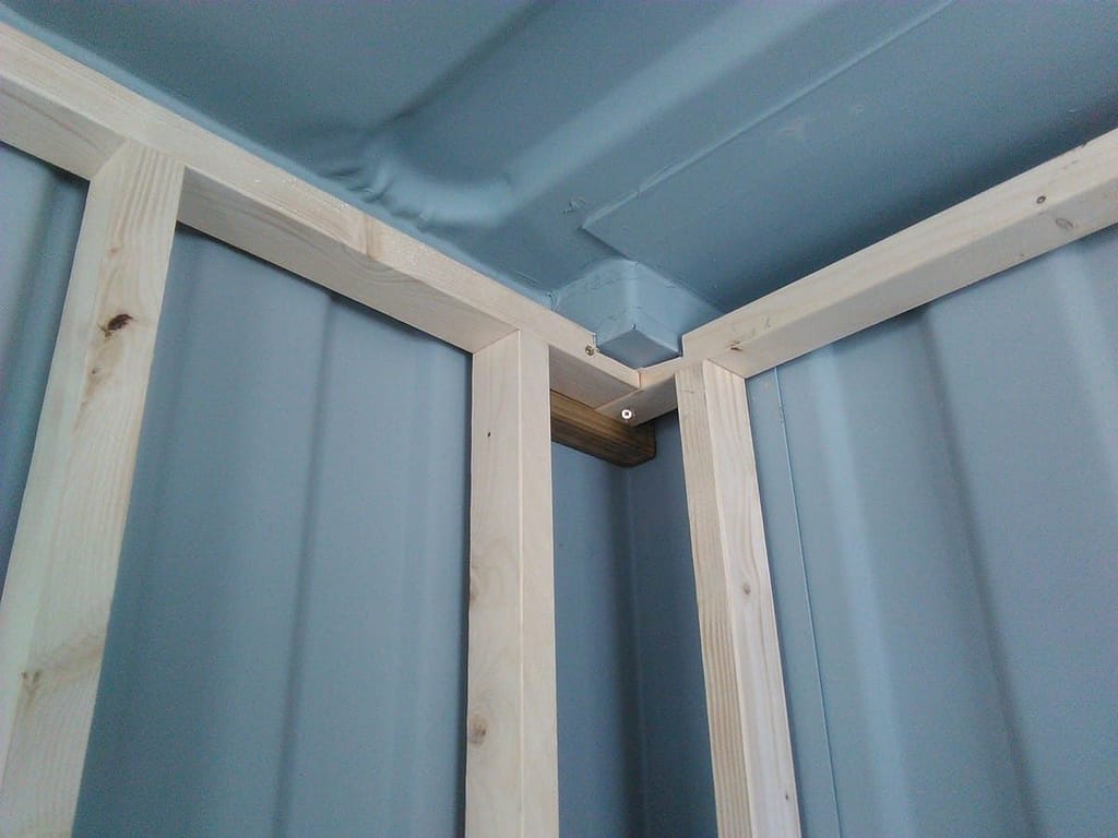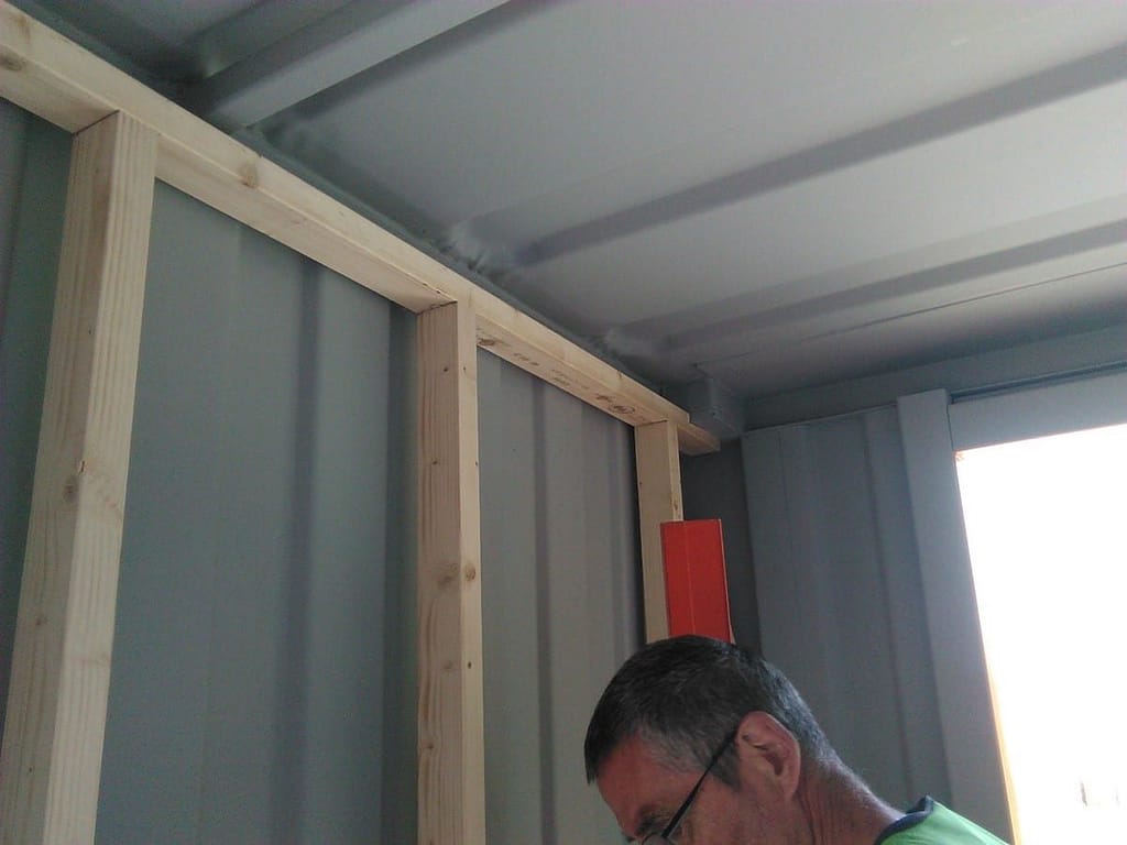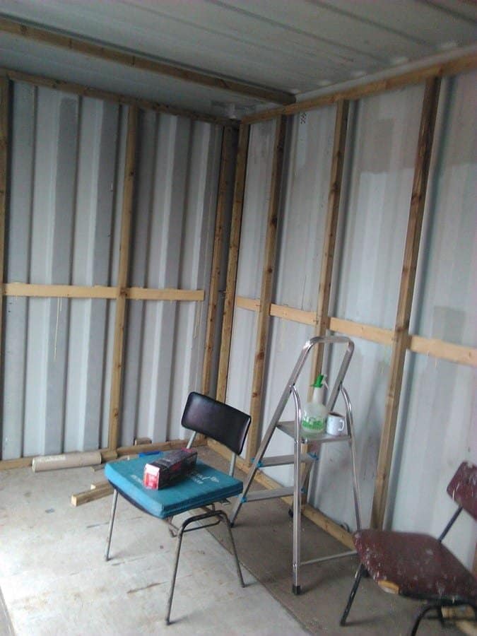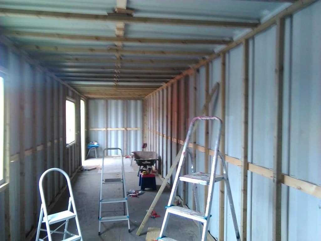 Firstly, if you were to use plasterboard, the position and accuracy of the studwork which lines the container has to be spot on. Not only do the studs have to be dead vertical but if they are 10 mm out the boards don’t join properly. have to be exactly standard distances apart or you waste a lot of plasterboard, and then the whole thing has to be skimmed or dry lined, both of which are skilled jobs.