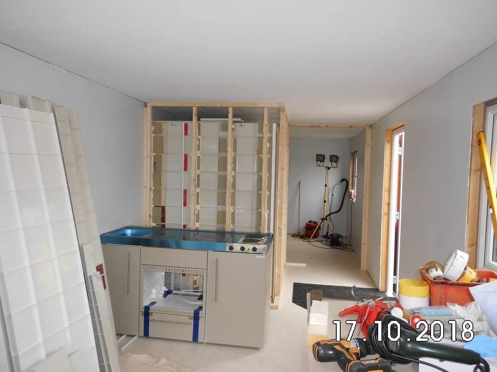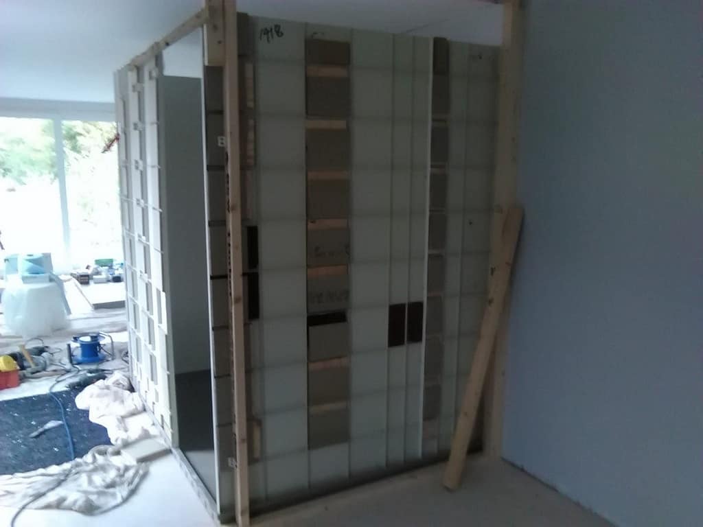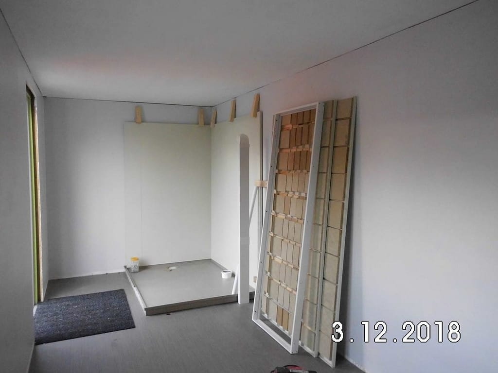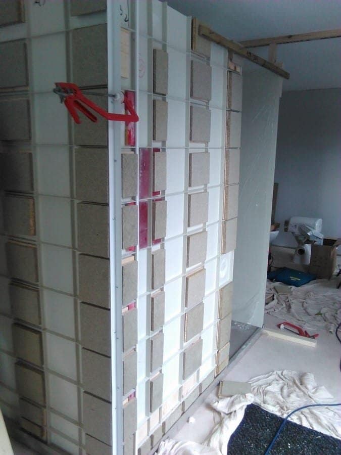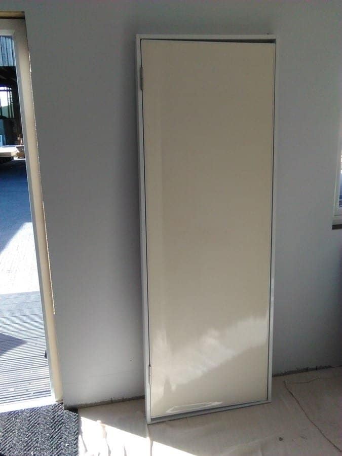 Firstly, if you were to use plasterboard, the position and accuracy of the studwork which lines the container has to be spot on. Not only do the studs have to be dead vertical but if they are 10 mm out the boards don’t join properly. have to be exactly standard distances apart or you waste a lot of plasterboard, and then the whole thing has to be skimmed or dry lined, both of which are skilled jobs.