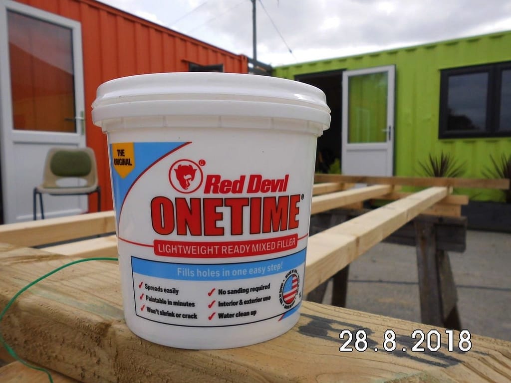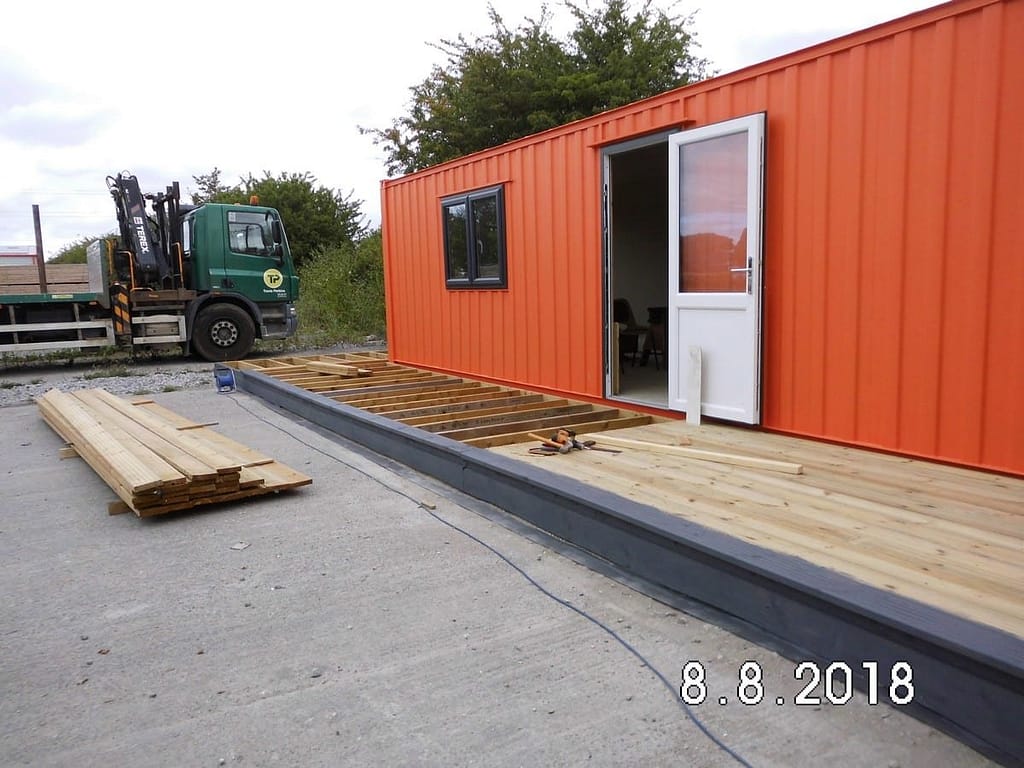 As you know, we have had an extraordinary run of dry weather this year, during all of which we have been working inside on both containers. As soon as they were insulated we were impressed by how cool they were to work in even in temperatures of over 25 degrees C.The moment I started building the frames for the decking outside we started getting drizzly showers, and as soon as we were ready to paint, the rain descended in buckets.