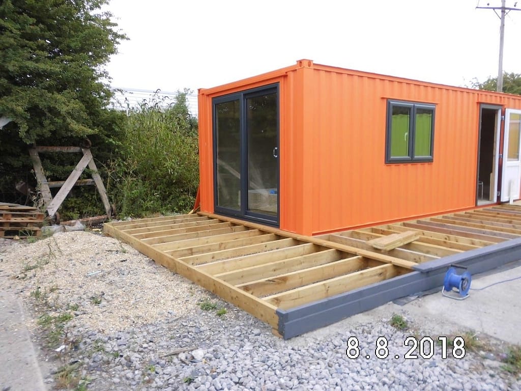 Our forty foot is an adequate, fairly cheap, second hand, ‘bog standard’ shipping container.If we had bought a better condition one it would have cost about £6200 delivered to site, painted and with all the door and window holes provided.