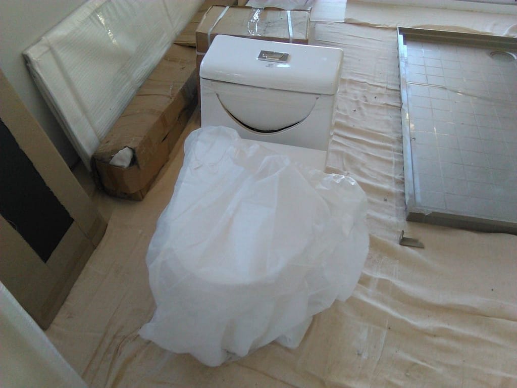 Just to confuse you. This is the bathroom in the orange one. Since we have got such an important visit on Thursday, I thought I would put the toilet and basin in place even though they are not plumbed in.