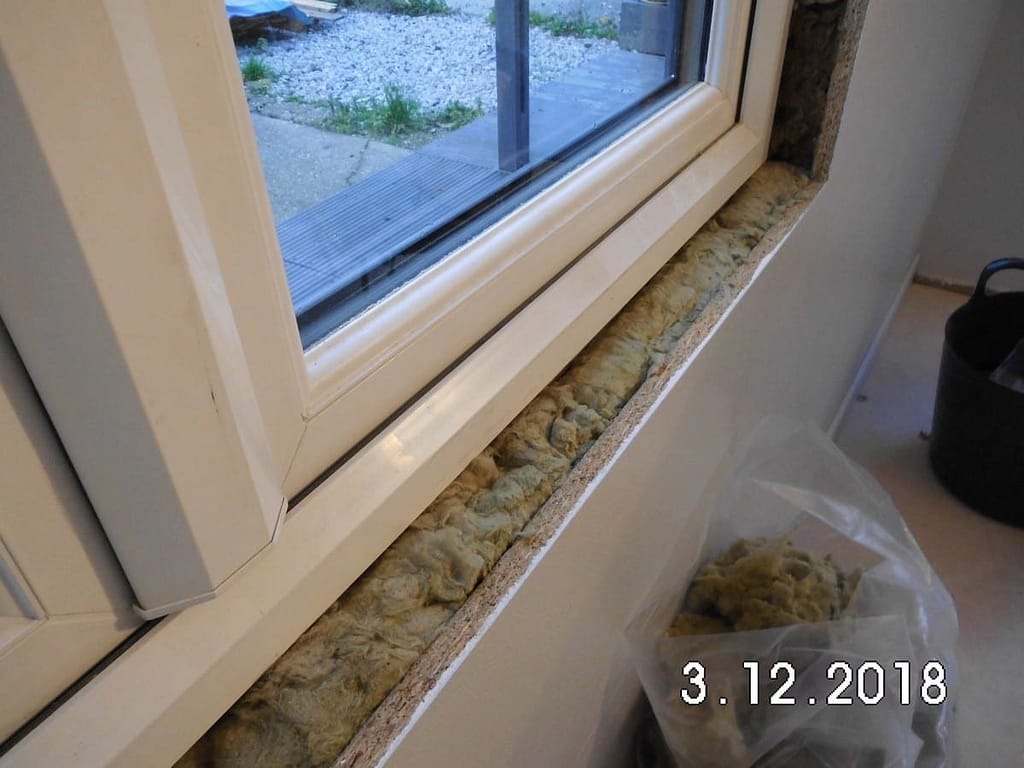The main insulation is closed cell foam but it made sense to do the window reveals in Rockwool type stuff which I think will work OK.