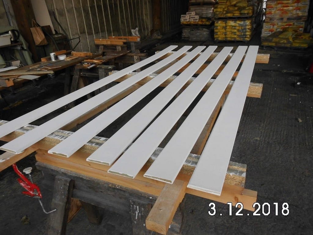 It may not have been the best idea to have the architraves and skirtings run off in MDF, because sanding and painting them has been very labour intensive, but there was some logic behind it. I just wanted a simple bull nose profile, which Travis didn’t seem to have in preprimed MDF or plastic. Then these mouldings tend to come as “reversibles” with optional profiles which I didn’t want either because I couldn’t use the reverse face, which I needed to do in the window recesses. Also I needed two different widths which they didn’t have anyway. And, finally, it gave me a productive job to give to the volunteers which was also a consideration. Nevertheless I think that in production, plastic is the way we have to go.