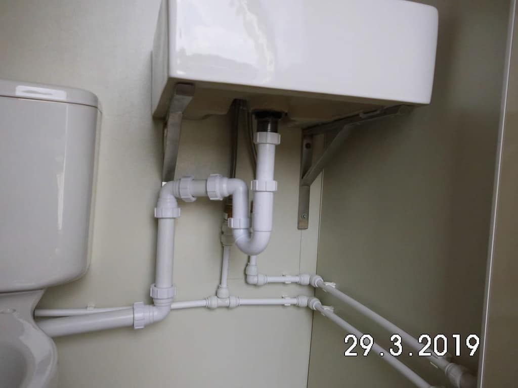 This is in the orange one. the left hand picture shows the heater under sink, and the right hand one feeds the basin and is in the bedroom wardrobe.