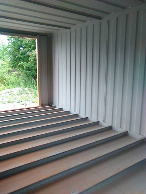 The picture on the right is the inside of the orange container which is the 32 foot x 10 foot. I need to explain that this is actually a new container manufactured in Lydney in the Forest of Dean.