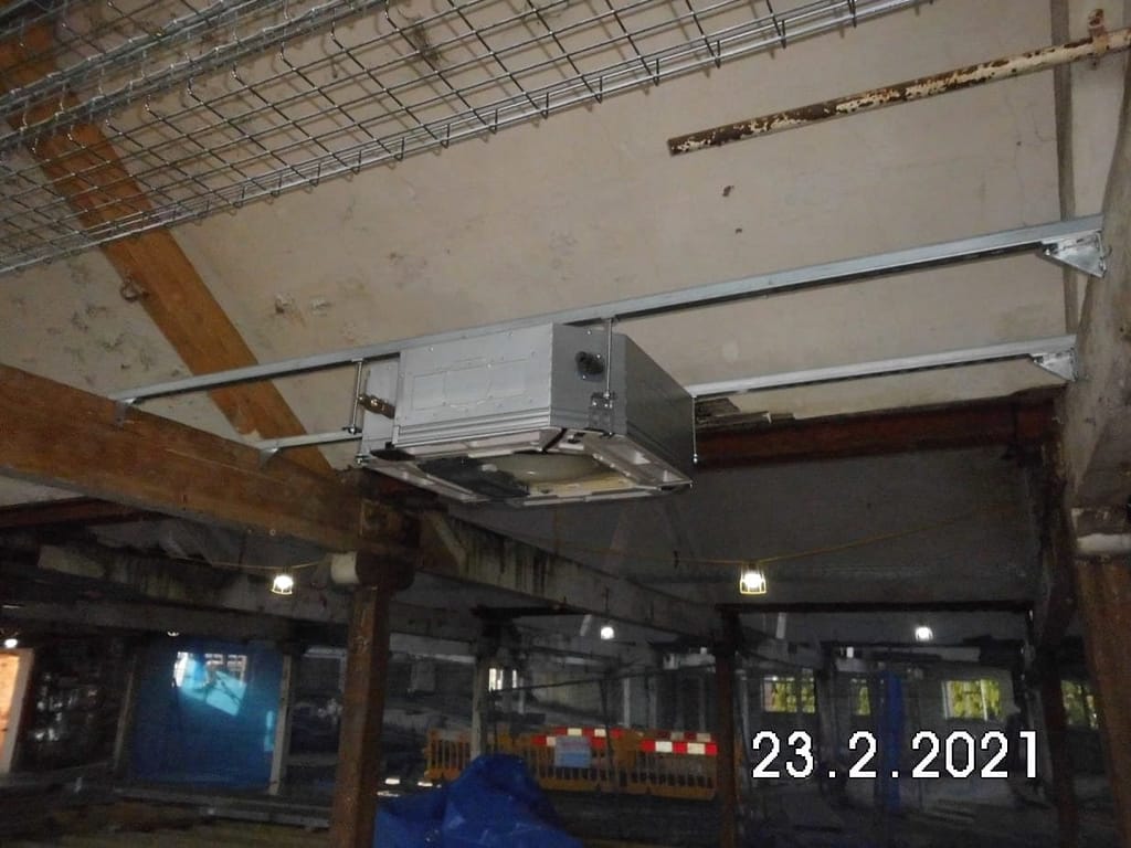 Here are a couple of pictures of the ceiling units which will provide the main space heating for the workshop area, the ground Floor youth area,
