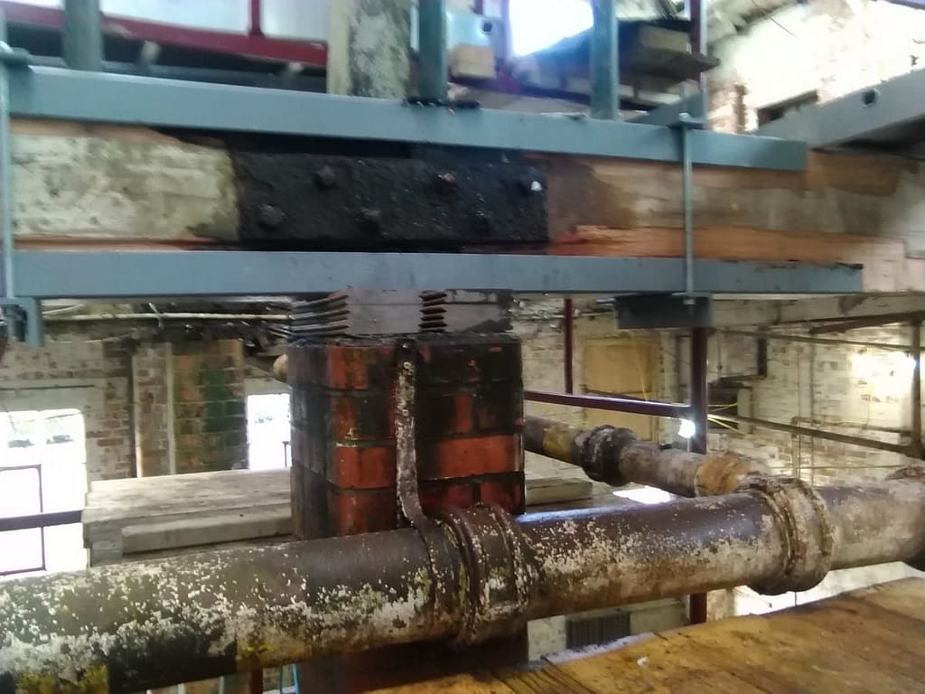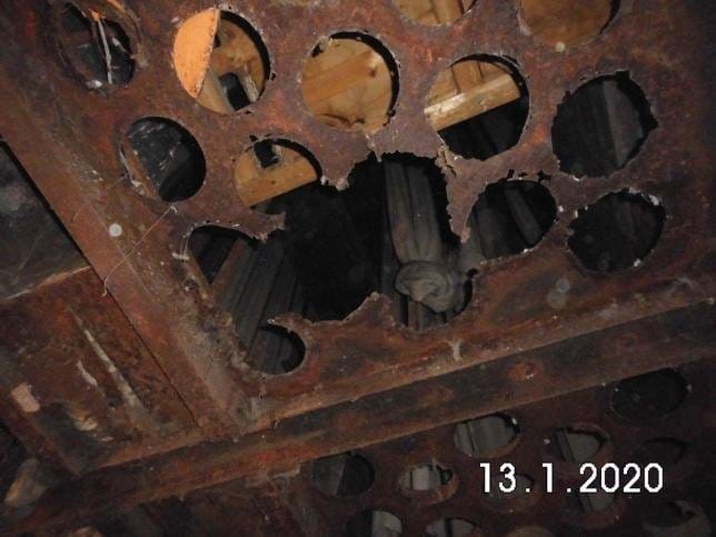 There was a lot of concern about the rusty condition of the cast iron central gulleys which serve the structural purpose of holding the walls together as well as taking the water away.