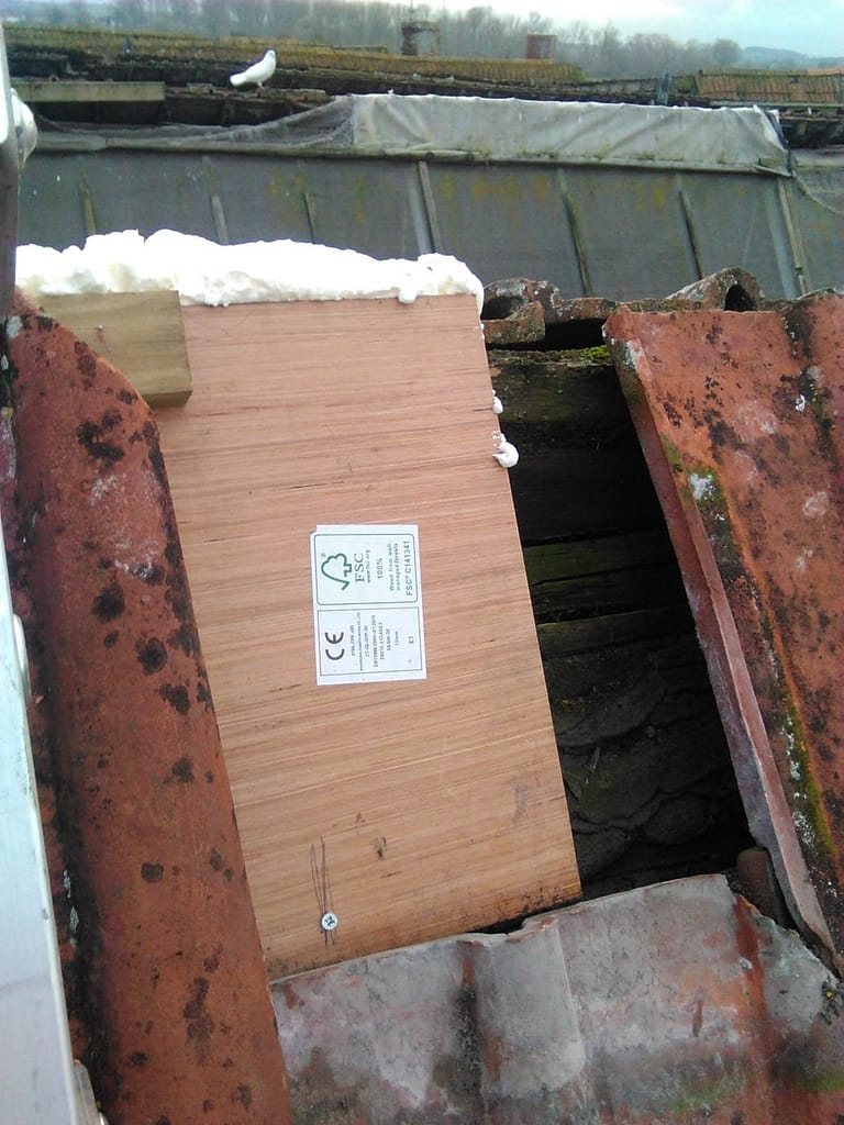 Although it is technically in Phase Two we have made some temporary repairs to the next roof pitch with tarpaulin just to help to keep the water out of phase one.